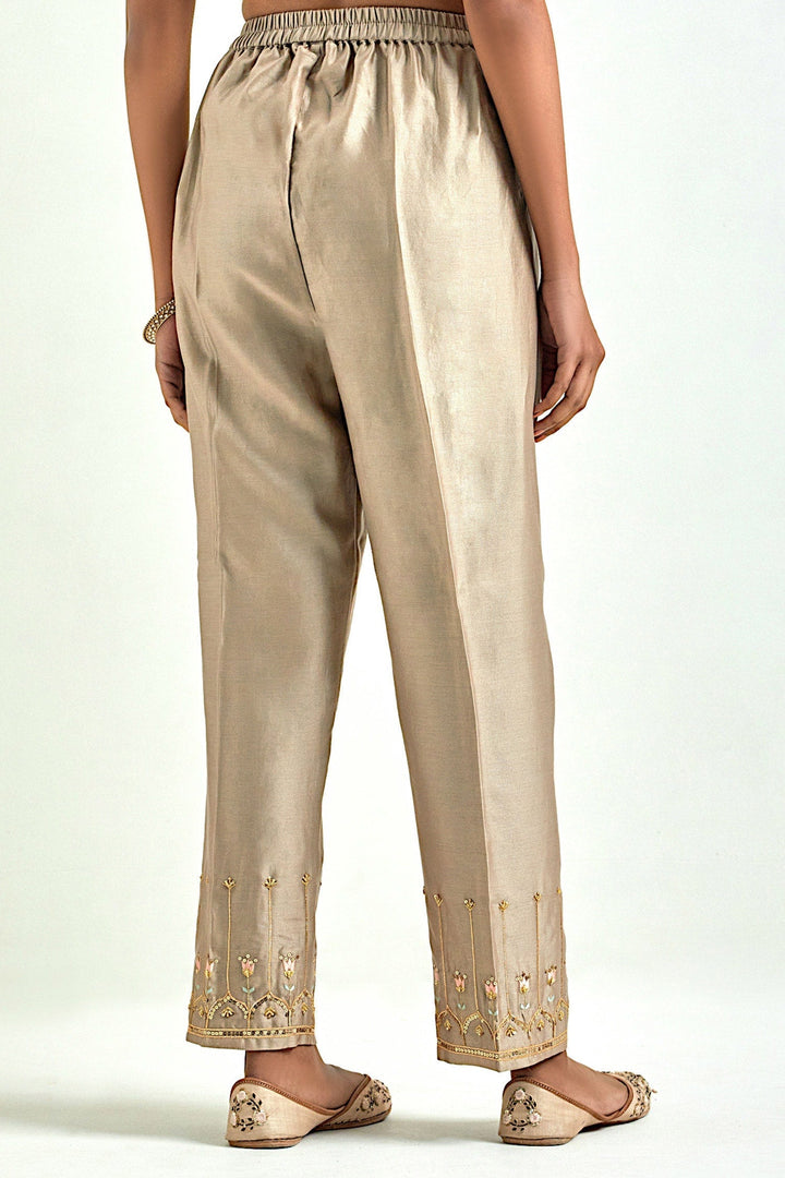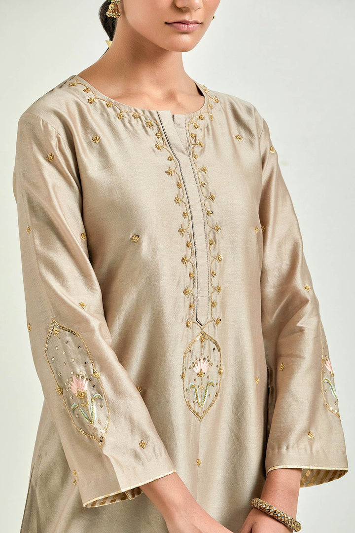 Brown Silk Chanderi Embroidered Sequins Round Hand Kurta Pant Set