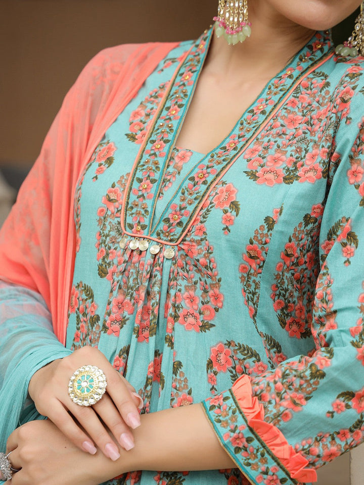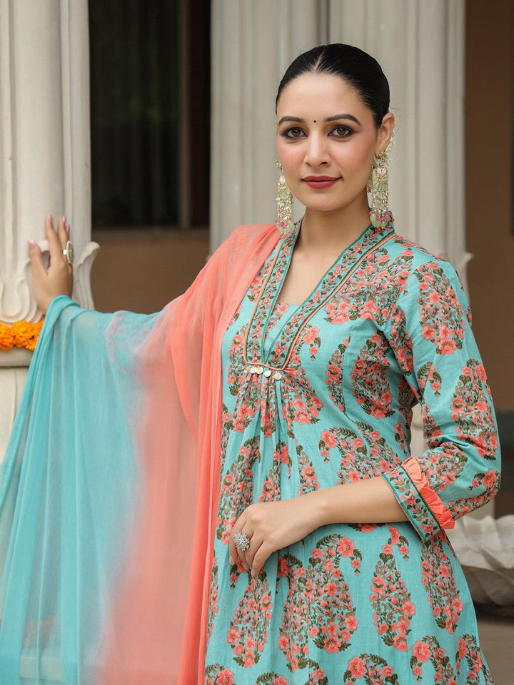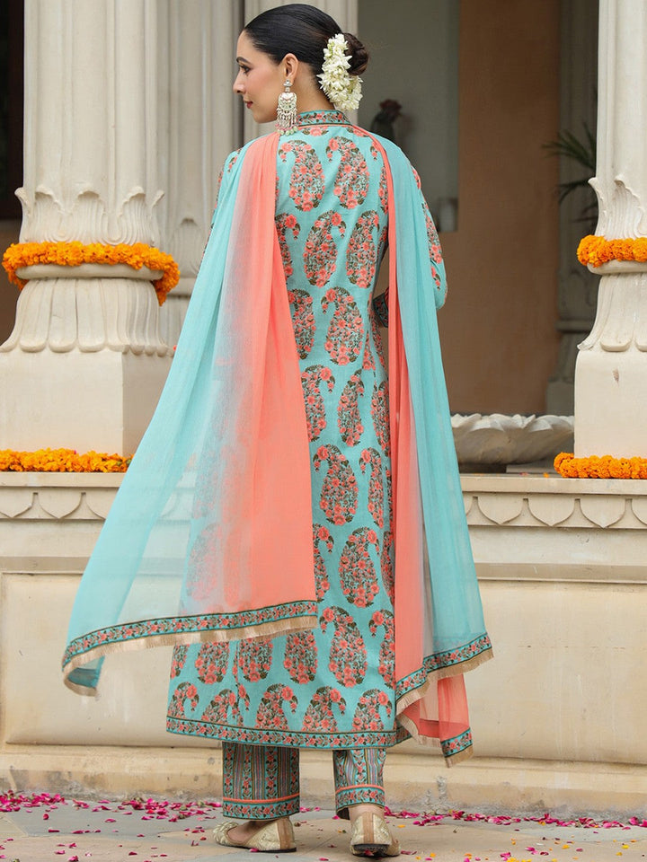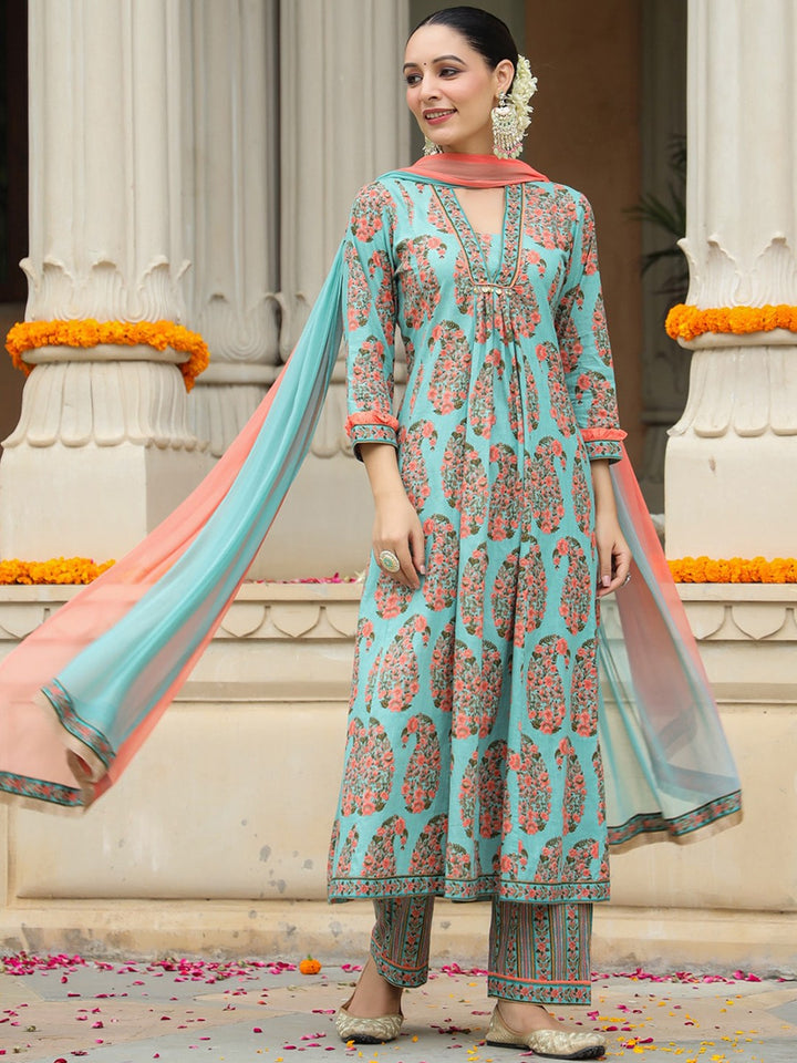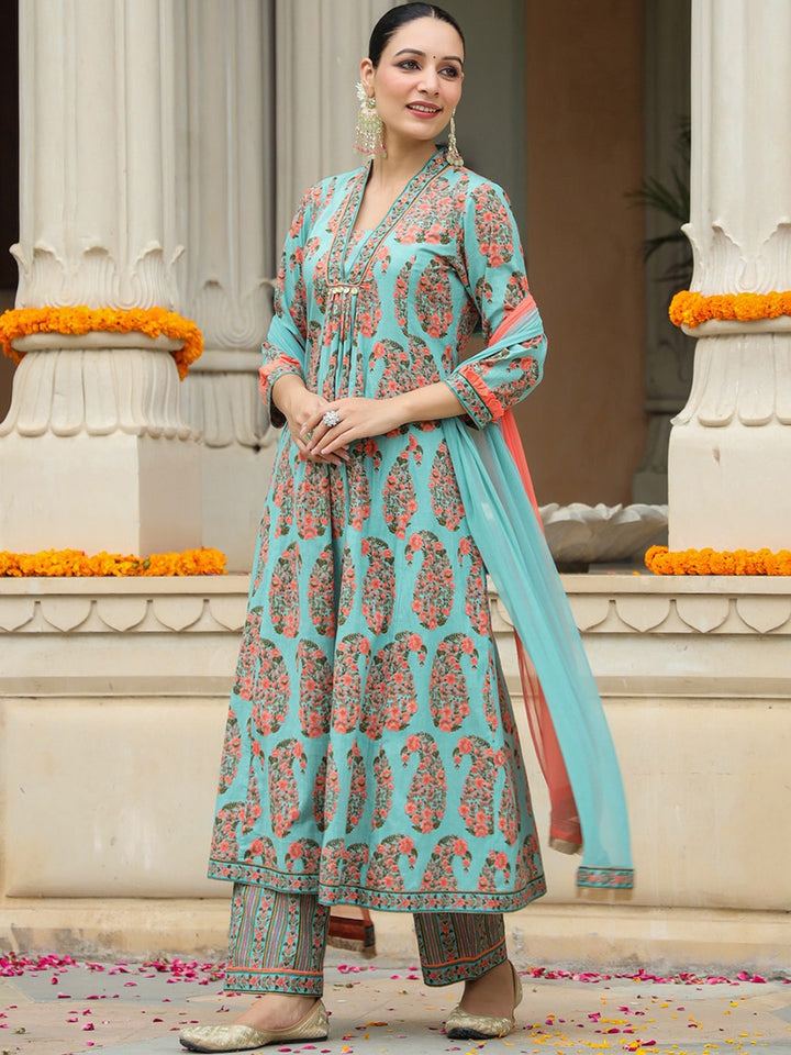 Ethnic Motif Printed Pure Cotton Kurta with Trousers & Dupatta