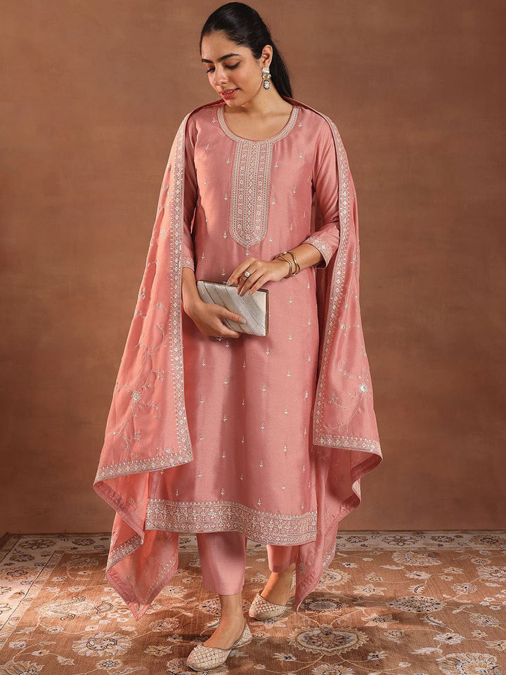 Ethnic Motifs Embroidered Sequinned Kurta With Trousers & Dupatta
