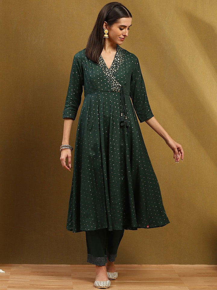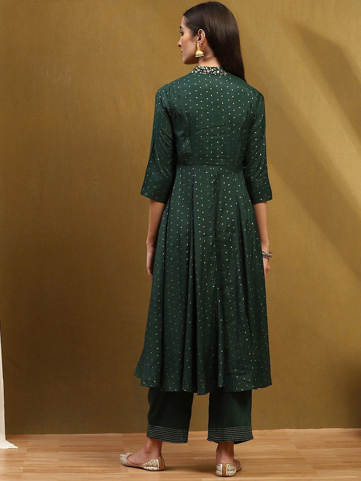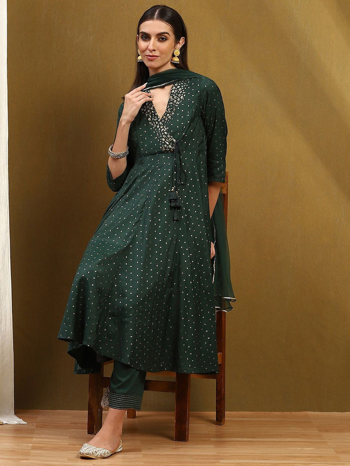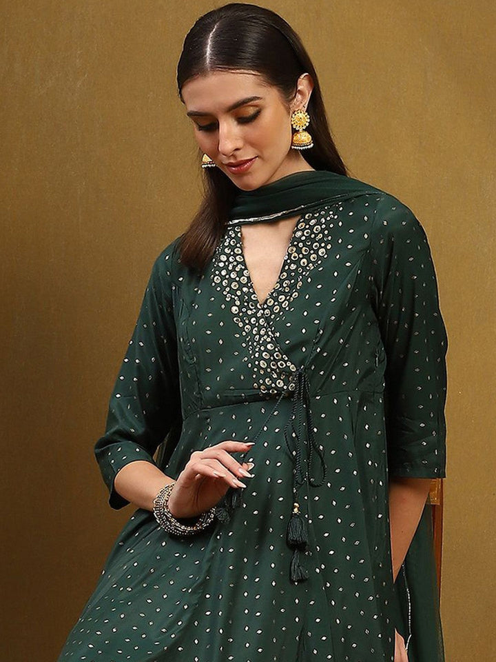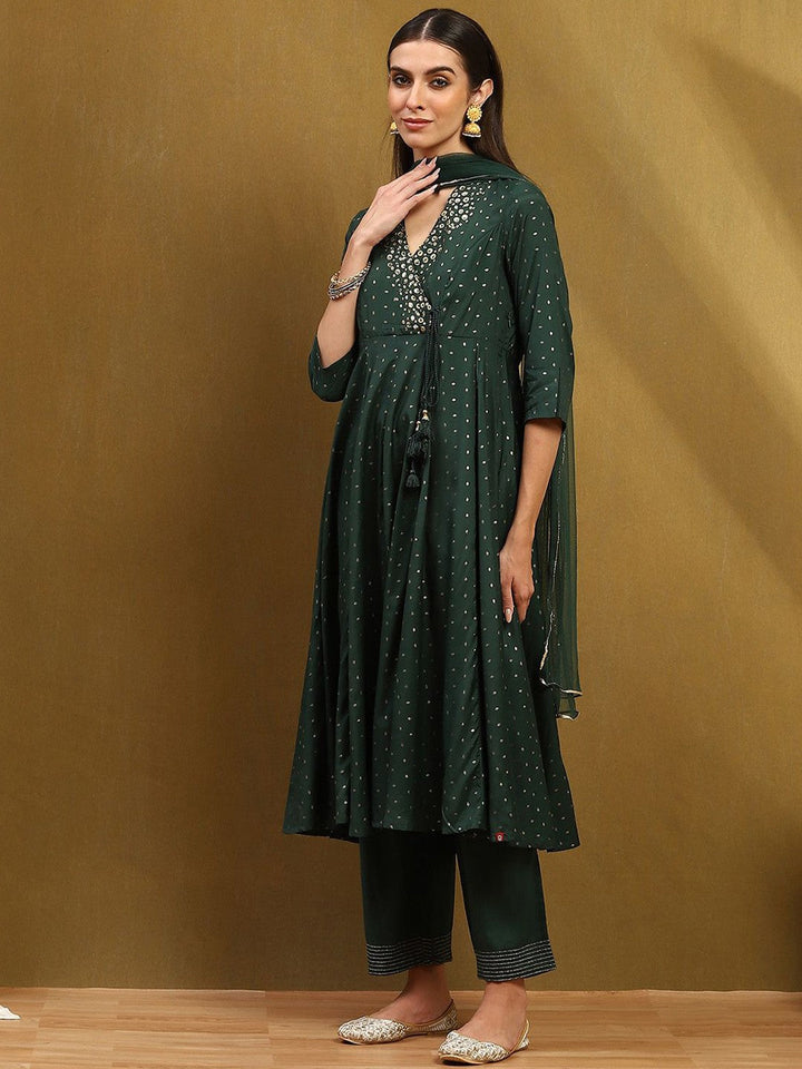 Ethnic Motifs Printed Mirror Work Anarkali Kurta With Palazzos & Dupatta