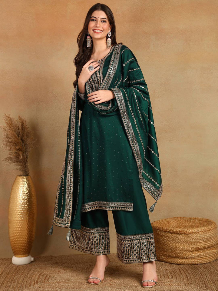 Floral Embroidered Regular Kurta with Palazzos & With Dupatta