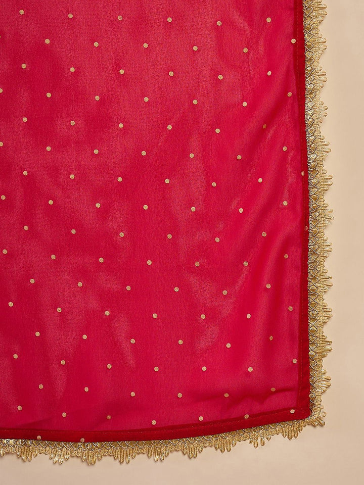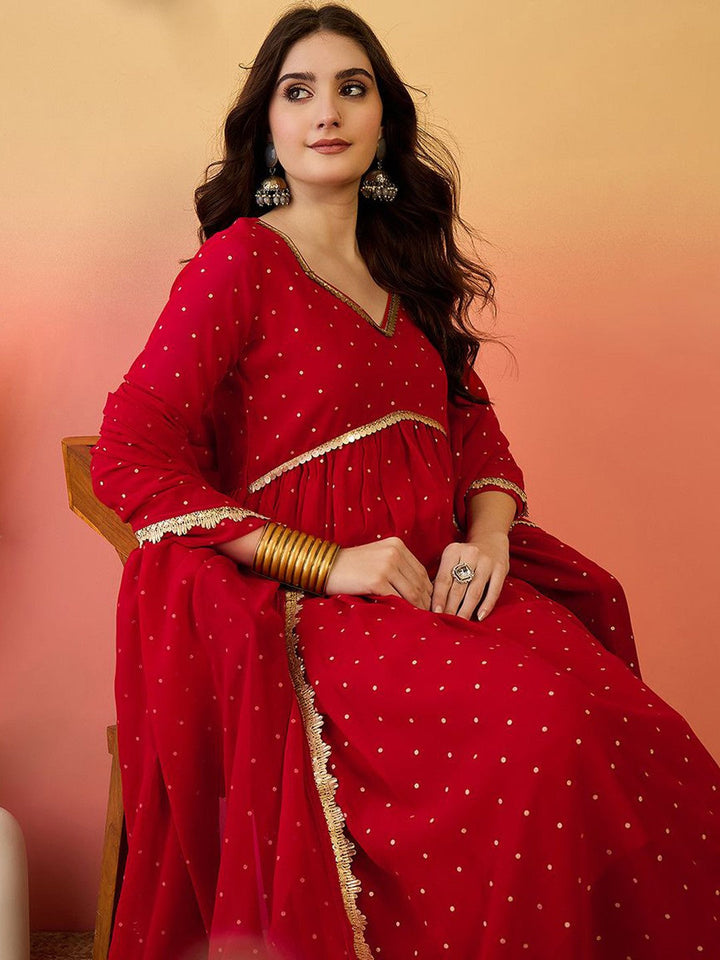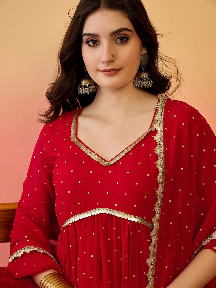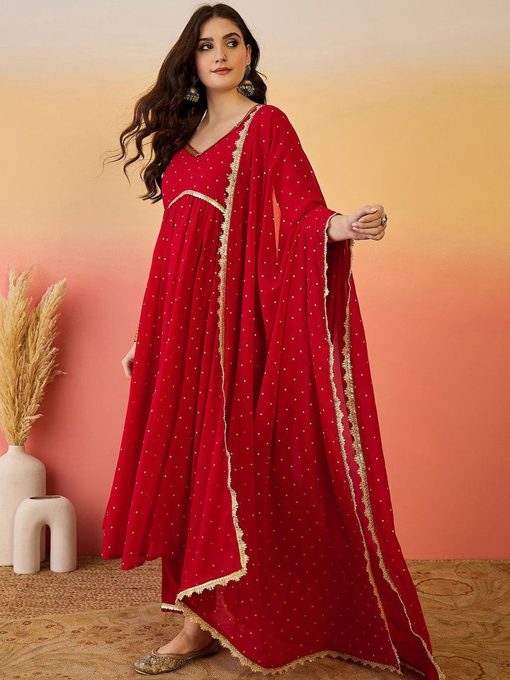 Geometric Sequinned V-Neck Georgette Empire A-Line Kurta With Trouser & Dupatta