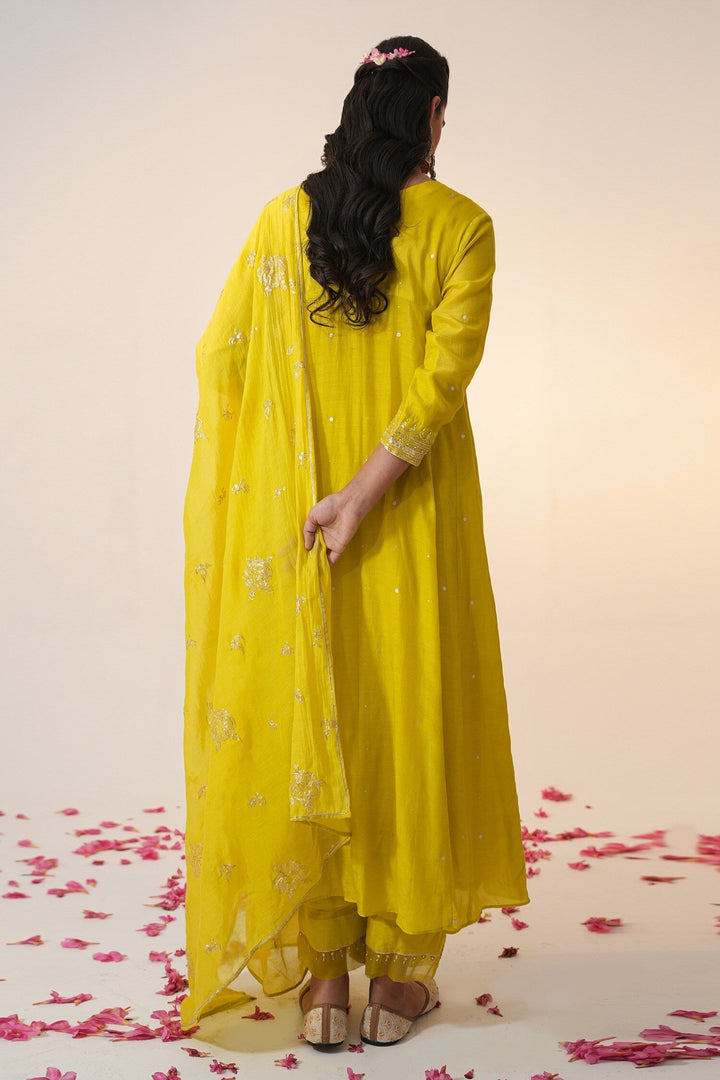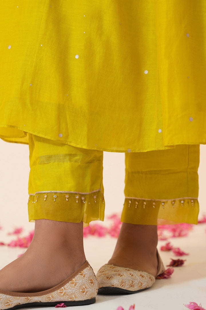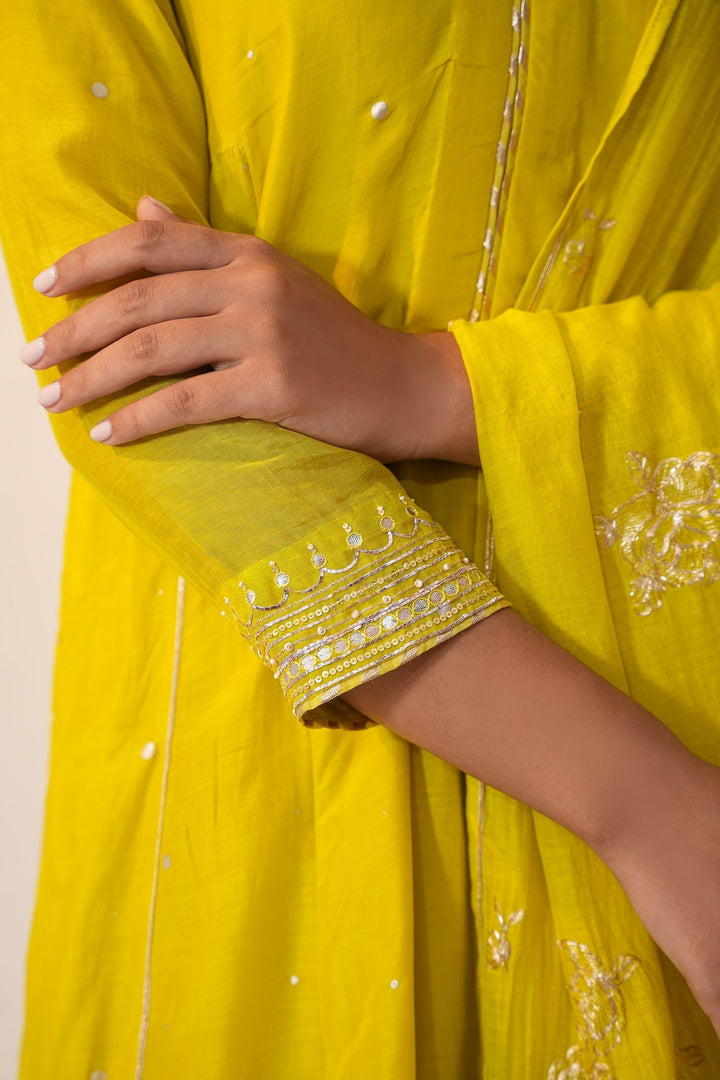 Green Cotton Silk Hand Embroidery Pittan Notched Hasrat Anarkali Trouser Set