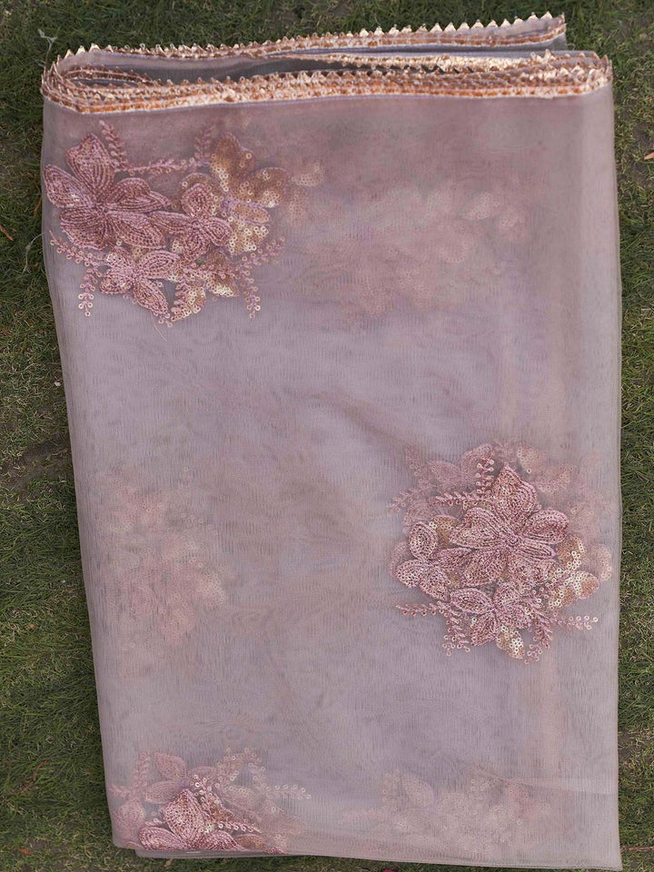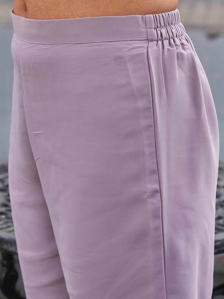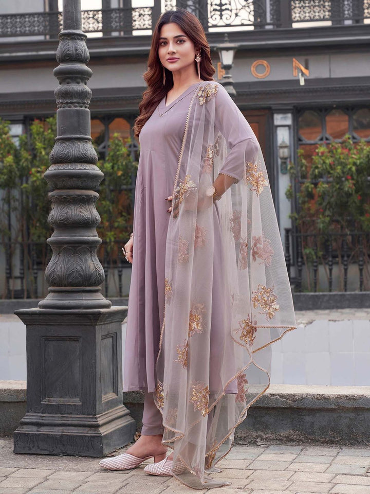 Mauve Anarkali Flared Kurta & Pant With Sequinns Dupatta (Set of 3)