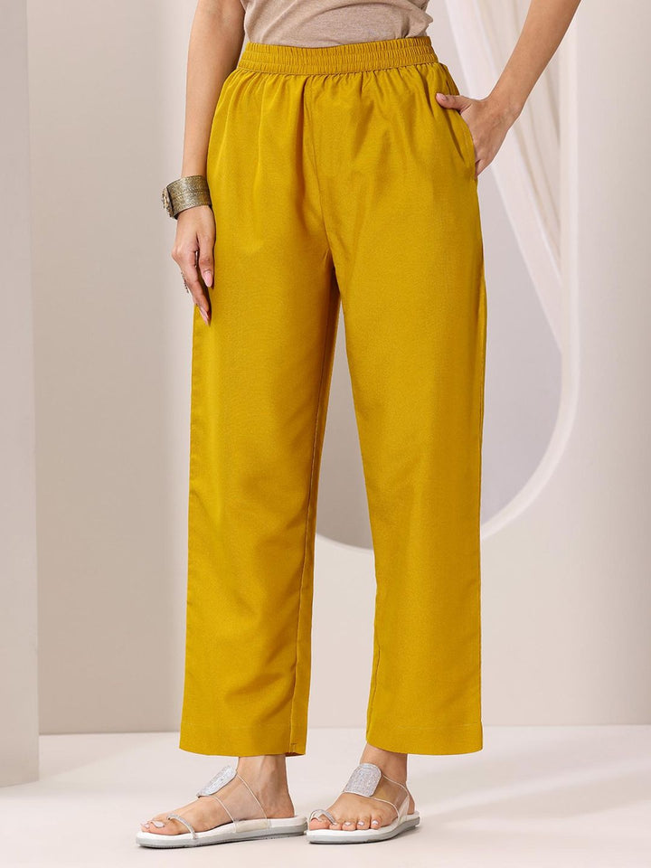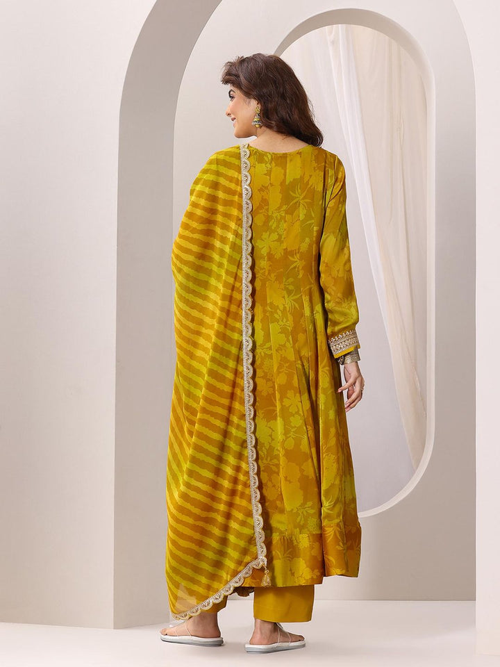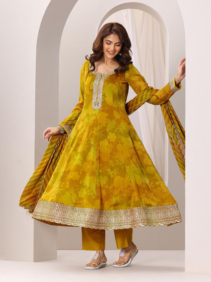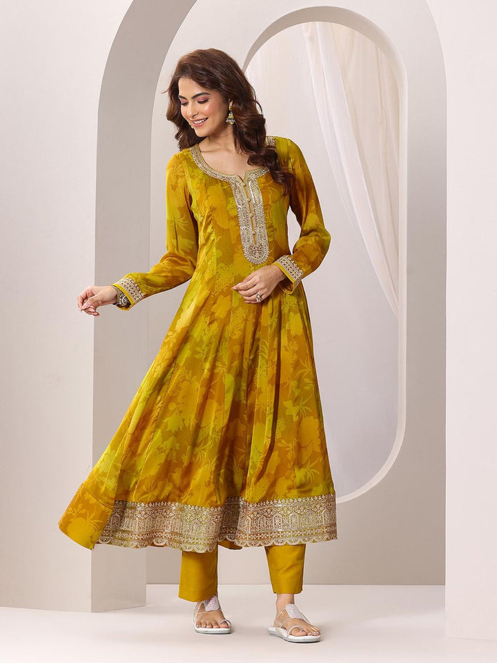 Mustard Floral Printed Embellishment Anarkali Kurta with Pant with Dupatta (Set of 3)
