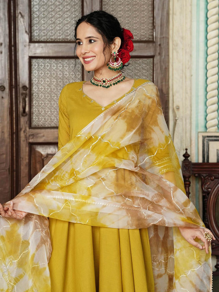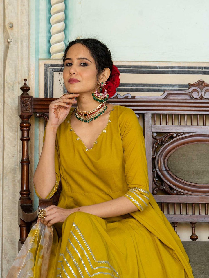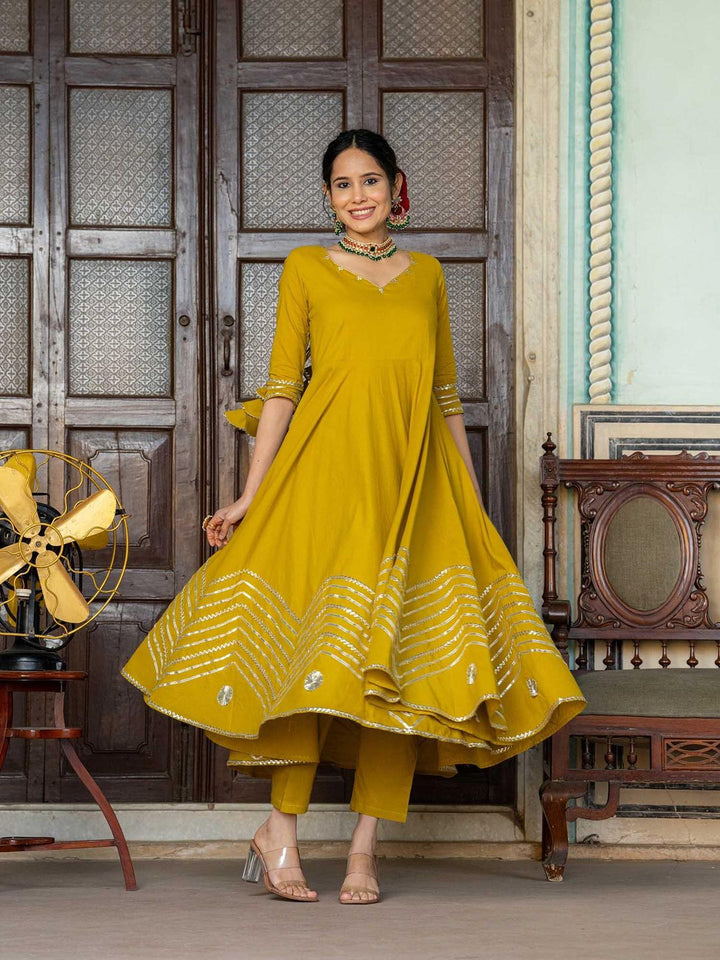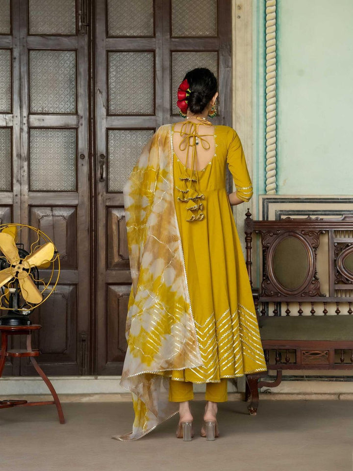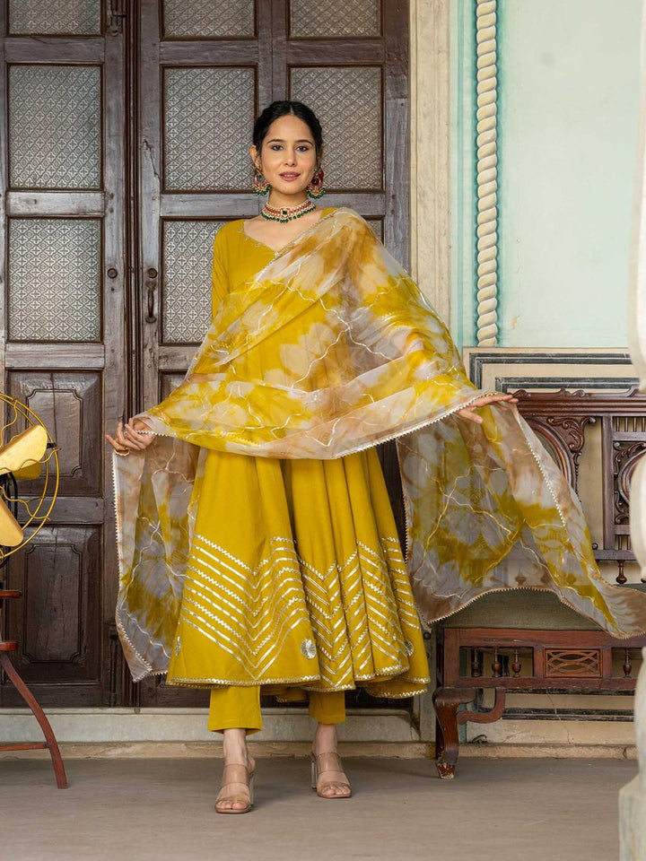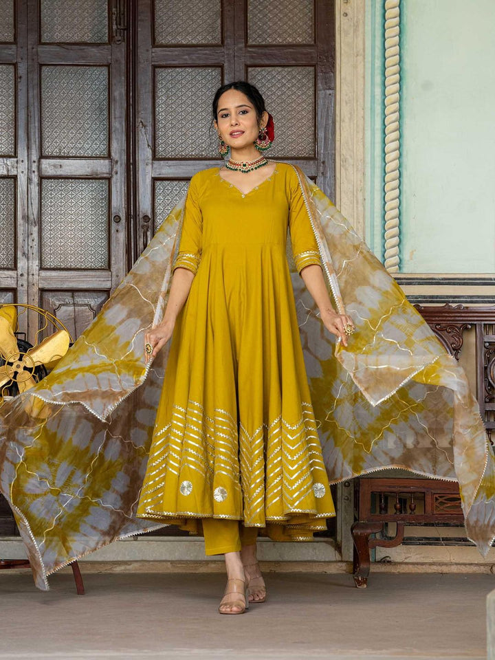 Mustard Gotta Work Anarkali with Pant and Dupatta (Set of 3)
