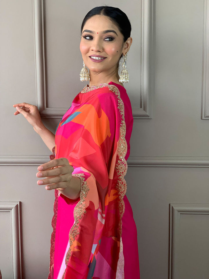 Pink Embroidered Kurta with Pant and Dupatta (Set of 3)