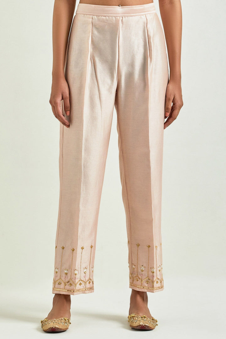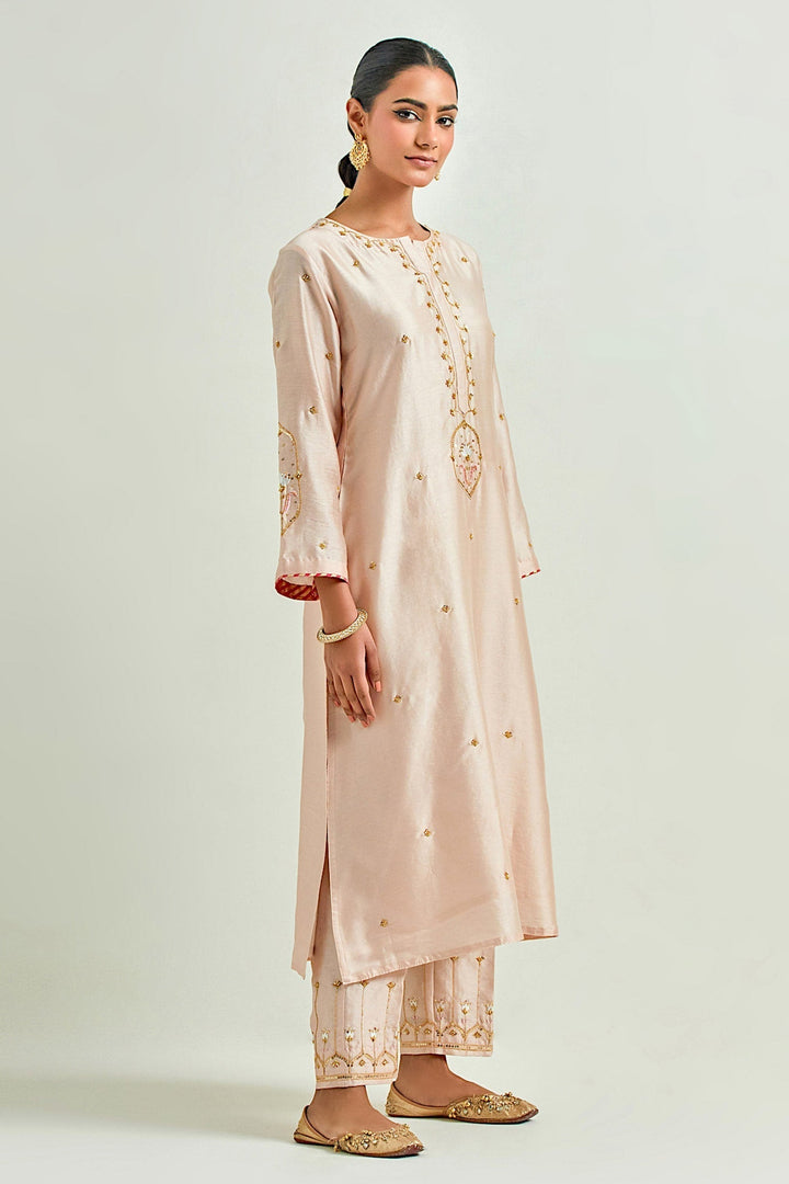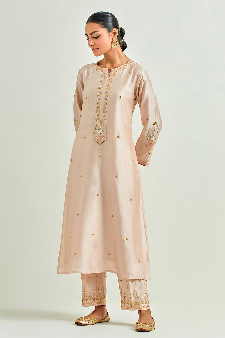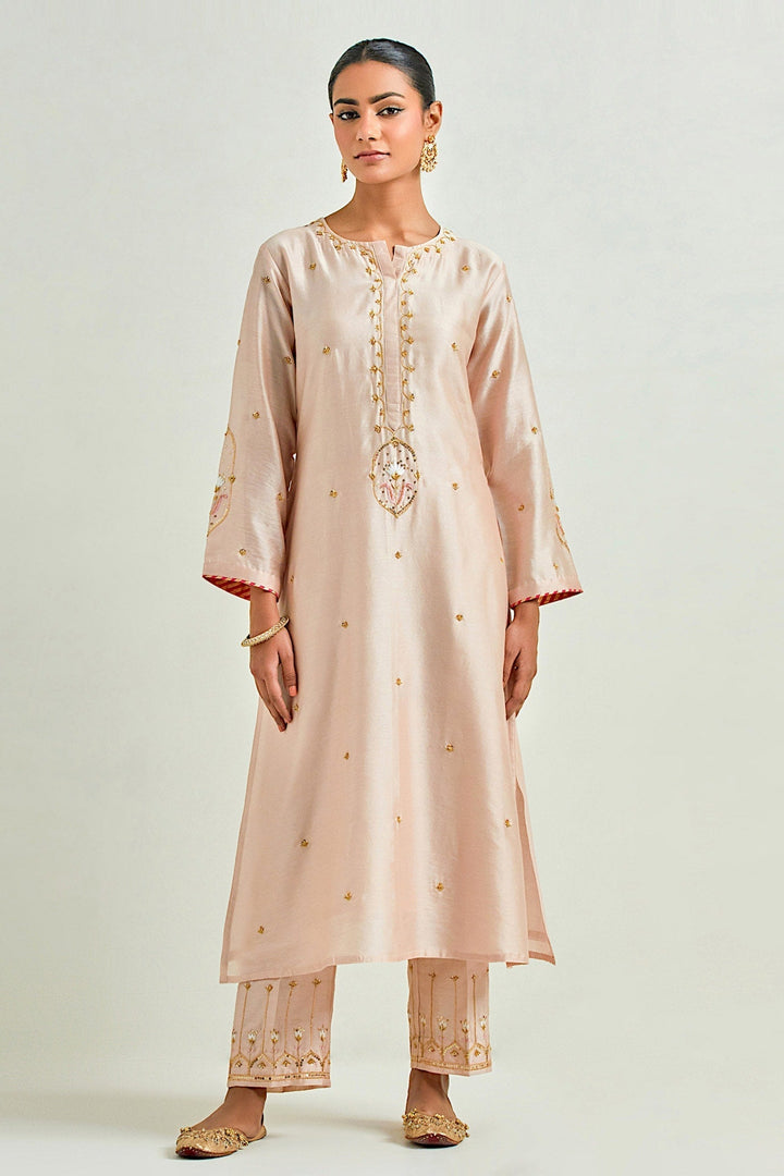 Pink Silk Chanderi Embroidered Sequins Round Scattered Floret Kurta Set