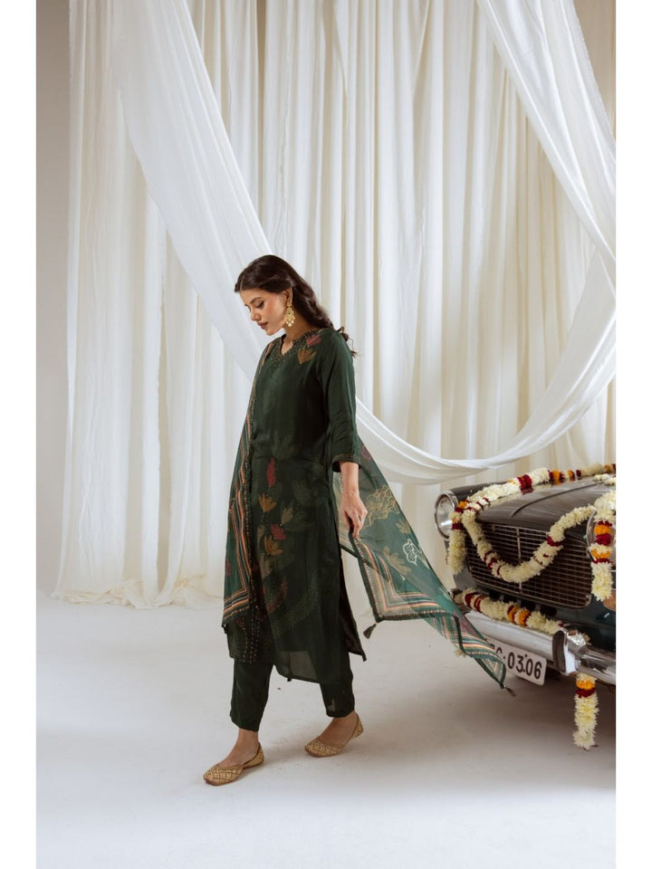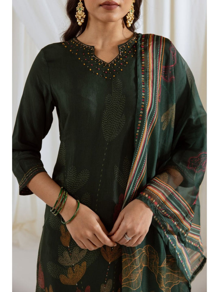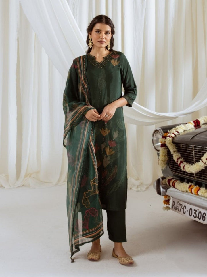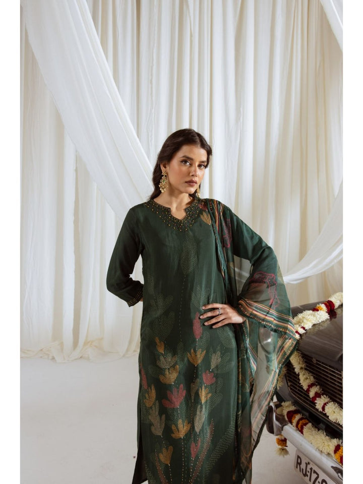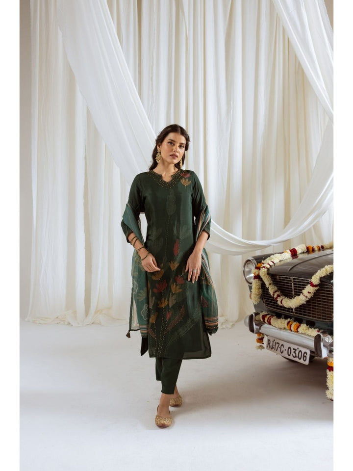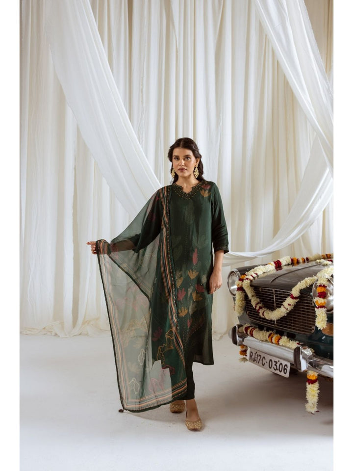 Saisha Saber Printed Muslin Green Kurta & Pant With Dupatta (Set of 3)