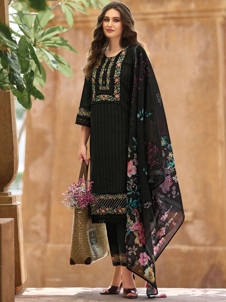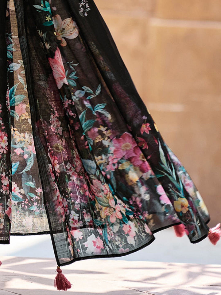 Women Floral Regular Thread Work Linen Kurta with Trousers & With Dupatta