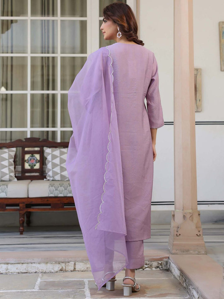 Women Lavender Embroidered Kurta with Pant and Dupatta (Set of 3)