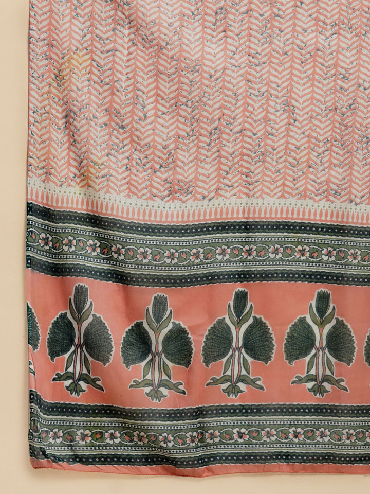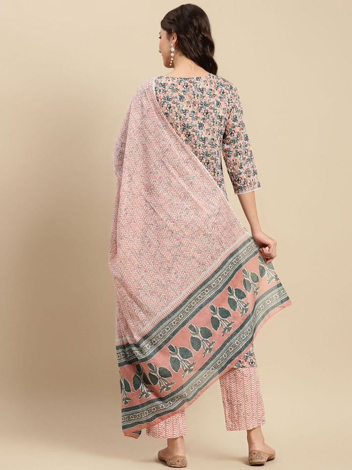 Womens Peach & Blue Yoke Mirror Work Kurta with Pant and Dupatta (Set of 3)